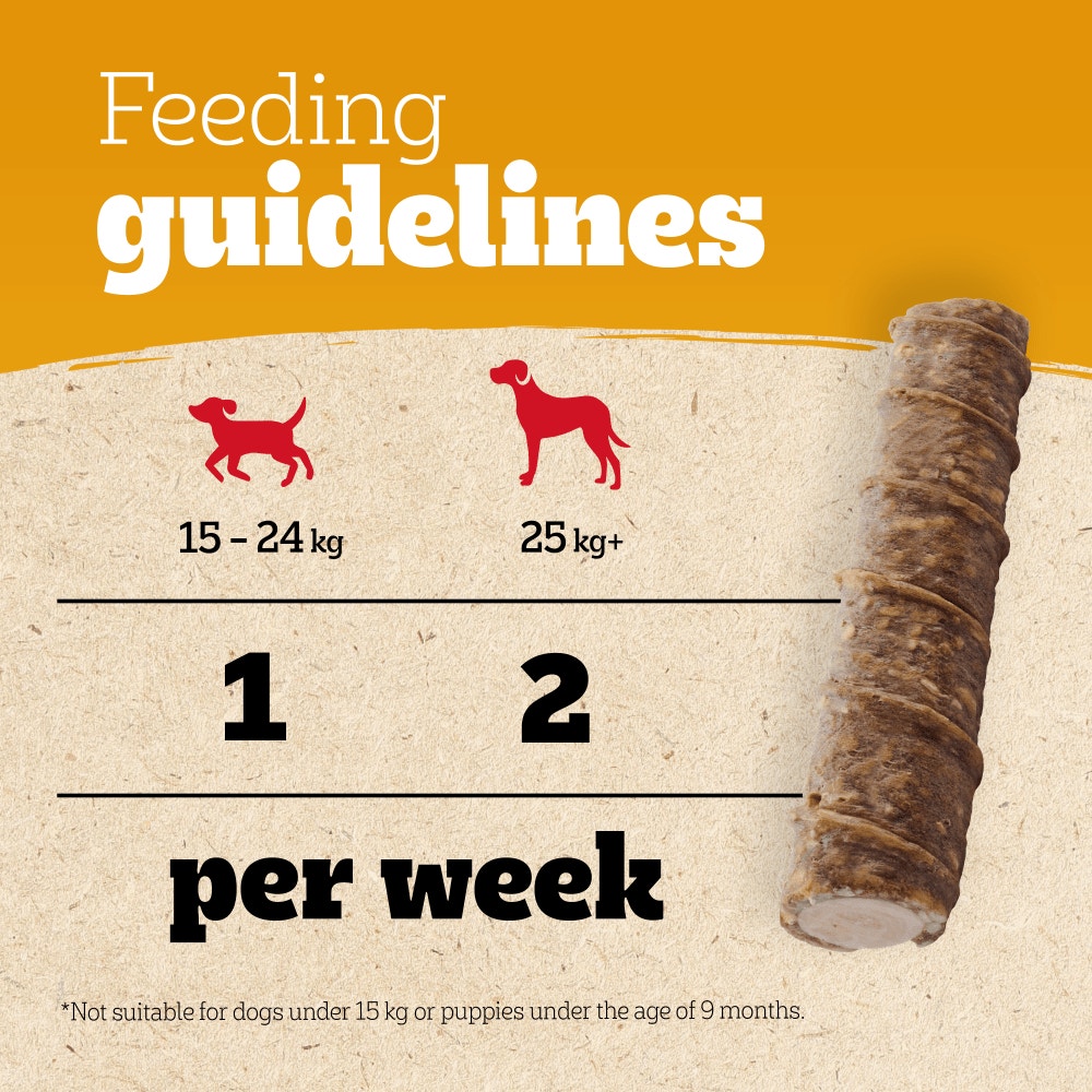 These dog chews are proven to be deliciously long-lasting, as confirmed by Waltham Institute's lasting time study, satisfying dogs' natural instinct to chew.