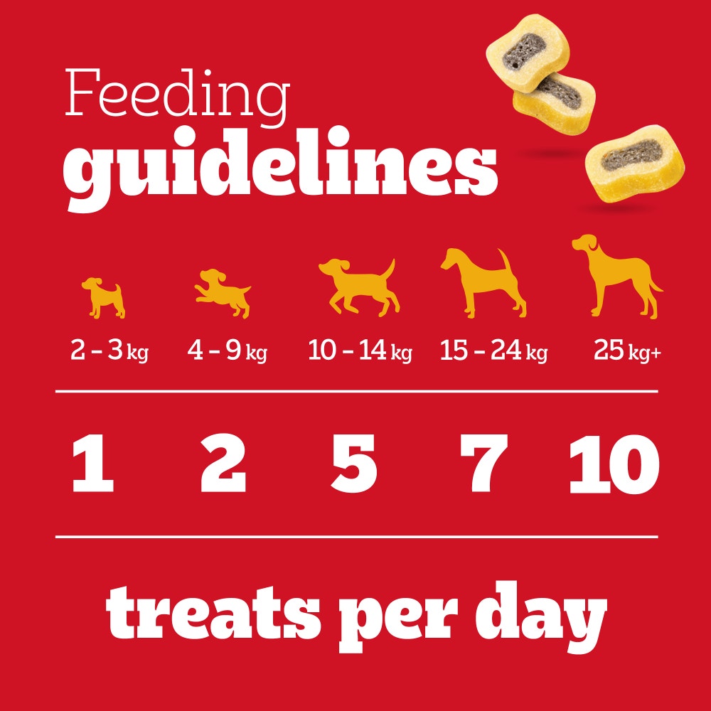 • PEDIGREE® Tasty Bites dog treats are dog chews that contain Omega 3 to help keep them fit for life, vitamins to help their natural defences and minerals like calcium to help give them strong bones.